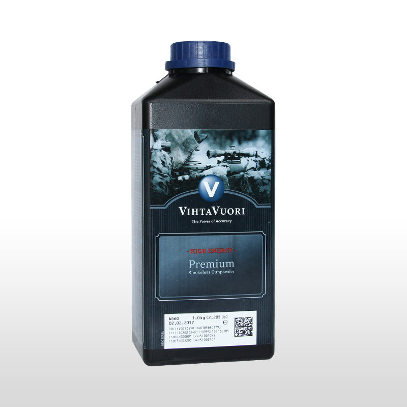 Die Abbrandgeschwindigkeit entspricht der von N 160. Dieses Pulver wurde speziell für die .270 Win. und die 6,5x55 entwickelt. Das neue N 560 von Vihtavuori erzielt gegenüber dem N 160 bei gleichem Druck eine wesentlich höhere Geschossgeschwindigkeit.
